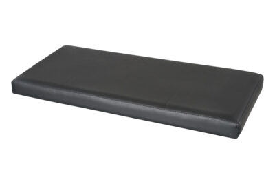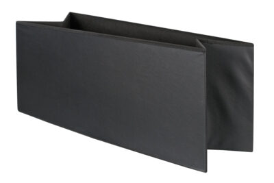 Σκαμπό πτυσσόμενο με αποθηκευτικό χώρο επενδυμένο με τεχνόδερμα σε μαύρο χρώμα.
