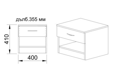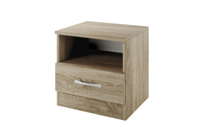 Το κομοδίνο έχει 1 συρτάρι αποθήκευσης το οποίο ανοίγει με πόμολο και με ένα ράφι.