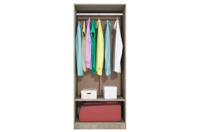 Στο εσωτερικό της ντουλάπας υπάρχει μεταλλικό δοκάρι ειδικά κατασκευασμένο για κρέμαση ρούχων και στο κάτω μέρος υπάρχει ένα μεγάλο ράφι.